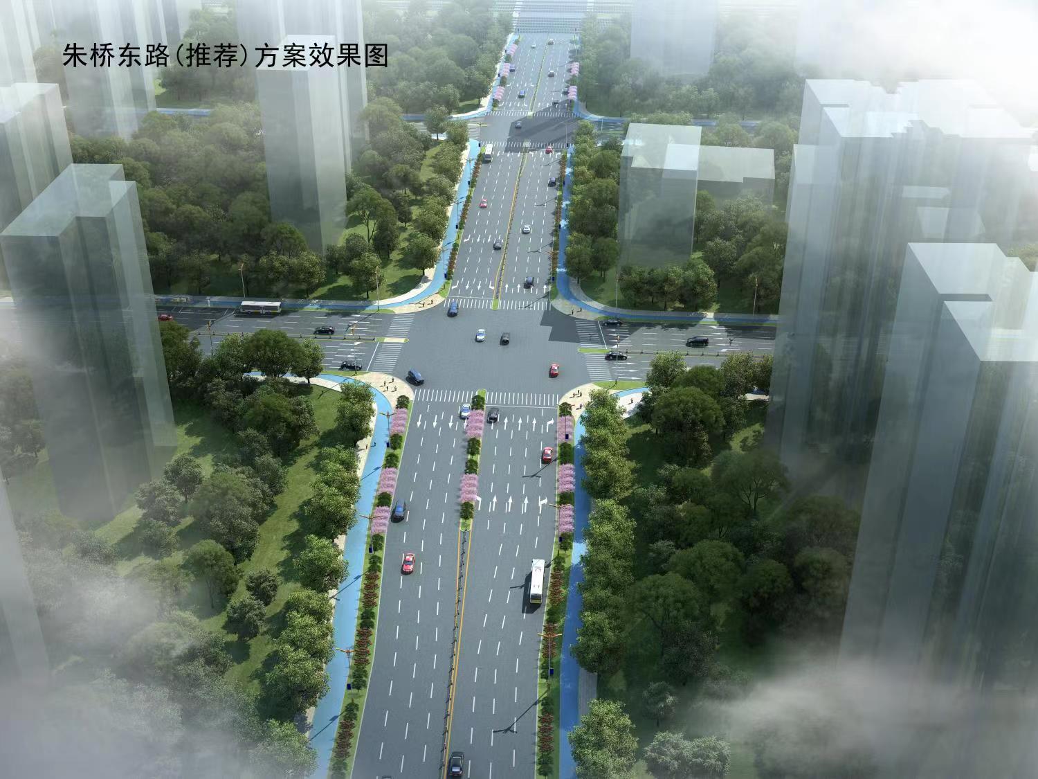 5)朱橋東路西起東站西路,東至站前三路,全長(zhǎng)約166m,規(guī)劃為城市次干道,道路紅線寬為44m,雙向8車(chē)道,設(shè)計(jì)速度為50km/h。