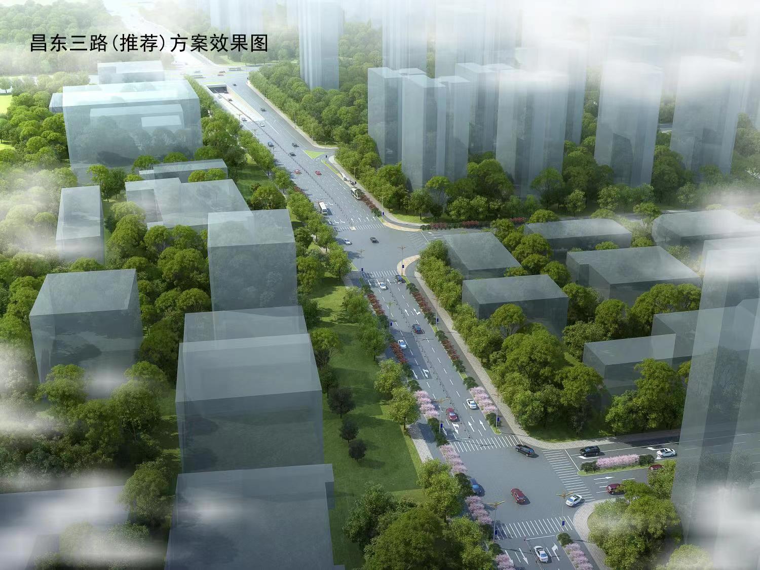 6)昌東三路西起胡板路,東至站前三路,全長(zhǎng)812m,規(guī)劃為城市次干道,道路紅線寬為32m,雙向4車(chē)道,設(shè)計(jì)速度為40km/h。